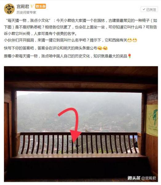 “宫殿君”不仅发布关于传统建筑、历史文化的知识,还在微头条上发起了“每天猜一物,涨点小文化”的活动,鼓励网友参与讨论,了解更多关于中国传统文化的知识。“宫殿君”每天发布的题目和答案都有数万人阅读,有大量网友参与讨论并表示“又涨知识了”。