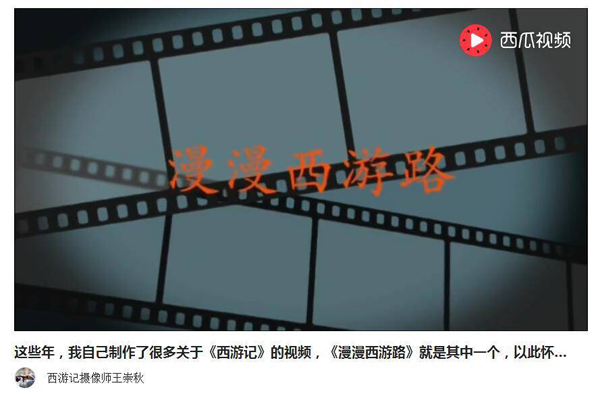 像《红楼梦》这样的文化经典,在数百年后依然有这么多人热爱,通过这样新的形式又将继续传承。另一部巨著《西游记》也在新的传播形式下受到关注,西游记摄像师王崇秋老师在头条号上发布视频《漫漫西游路》,记录电视剧《西游记》拍摄中的趣事,吸引更多人了解《西游记》及西游文化。