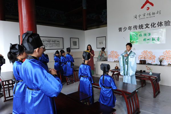 在博物馆青少年传统文化体验基地,来自全市中小学的22名优秀学生,参加了“寻根溯源 粽叶飘香”端午主题活动,特别邀请了知名茶艺师一茗老师和她的团队,向青少年讲述端午习俗、传统礼仪、茶文化……