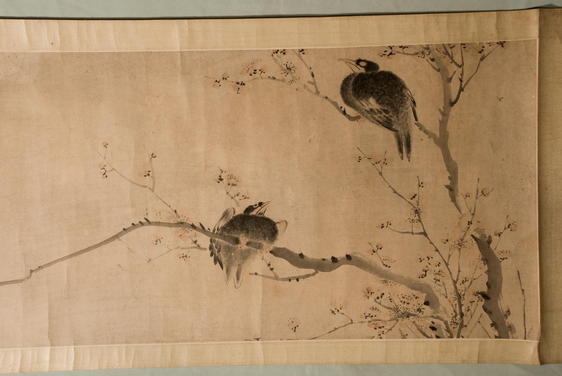 清汤禄名纸本梅花栖鸟横轴