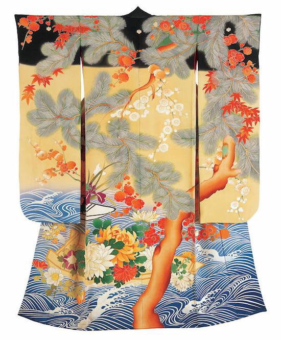 Kimono for a young woman (furisode), 1905–20, probably Kyoto, Japan。 ? Khalili Collection, K106。