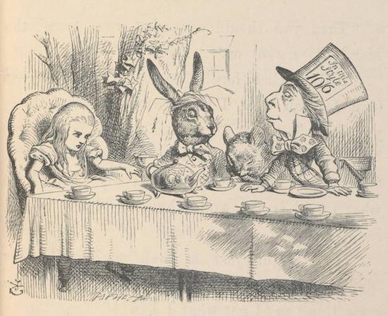 Illustration from Alice’s Adventures in Wonderland, written by Lewis Carroll, illustrated by John Tenniel, first published edition, 1866, p.97。 National Art Library。 ? Victoria and Albert Museum, London。 ? Victoria and Albert Museum, London