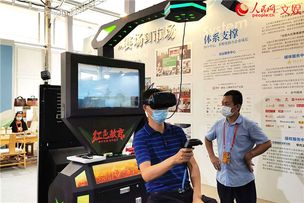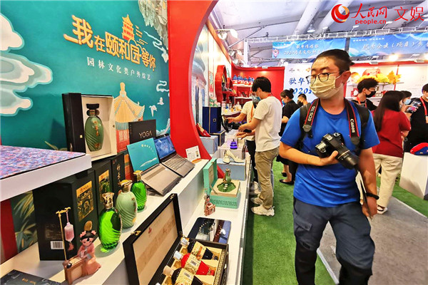 观众现场体验2020北京文化创意大赛获奖文创产品。人民网 刘喆摄