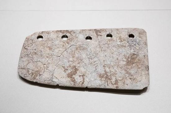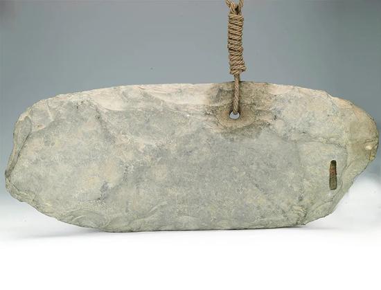 特磬 新石器时代 长79厘米,高32厘米,中部最厚5.5厘米,底缘厚1厘米 山西省临汾市襄汾县陶寺遗址出土 山西博物院藏