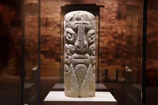 双面人面石柱 石峁遗址出土