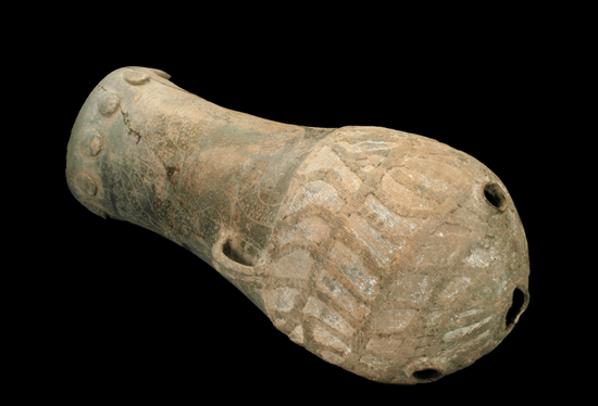 土鼓 新石器时代 通高80.4厘米,上口径25.6厘米,最大腹径41厘米 山西省临汾市襄汾县陶寺遗址出土 山西博物院藏