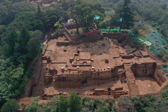 朝元阁遗址位于陕西省西安市临潼区骊山西绣岭第三峰峰顶北端,始建于唐天宝年间。从2018年开始,陕西省考古研究院配合朝元阁遗址保护项目,对朝元阁遗址开展发掘工作。发掘面积1550平方米,全面揭露了夯土高台、主体建筑、东西踏道、廊房等,厘清了遗址的层位关系,发现了叠压在唐代遗址上方的晚期建筑基址,探明了唐代夯土的范围与深度,清理了残存的唐代建筑木构件,并对遗址开展了航空测绘、激光扫描等精细测绘工作。通过发掘,朝元阁遗址的空间布局、构件形制、施工方法等已清晰揭示。