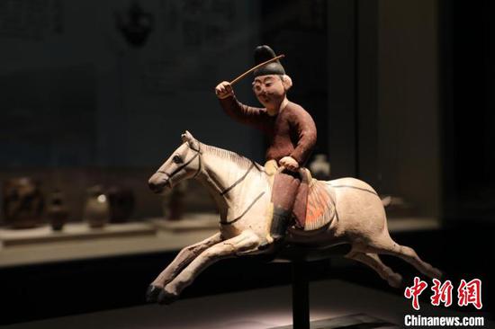 新疆维吾尔自治区博物馆收藏的唐代彩绘泥塑打马球俑。四川博物院供图