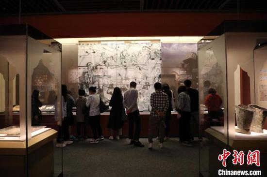 游客参观“天路长歌——唐蕃古道沿线七省区精品文物联展”。四川博物院供图