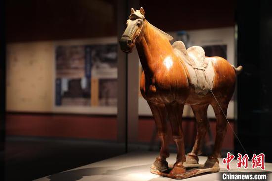 青海省博物馆收藏的唐代三彩陶马。四川博物院供图