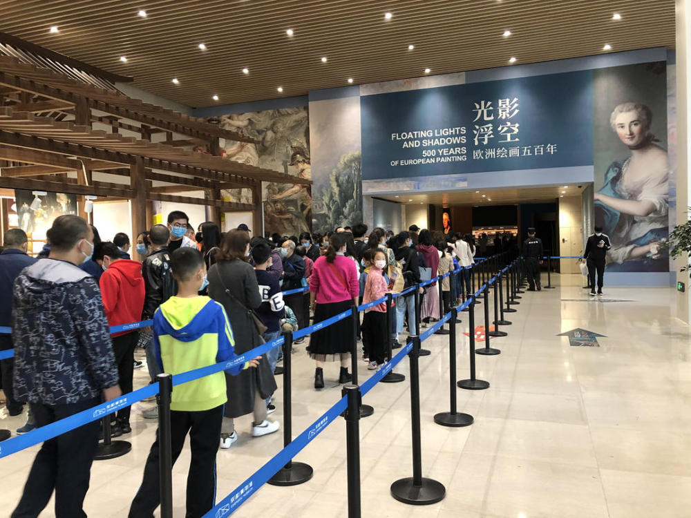 打卡天府广场之后奔赴成都博物馆,是大家共同的选择。10月6日,成博迎来了新馆开馆4年来第1000万名观每天还不到开馆时间,就有观众在成博的门口排起了长队。伦勃朗23岁那年带有青春痘的自画像,莫奈尚未完工的《查令十字桥》,高更在《白杨沐风》里呈现偶然得见的巴黎乡村景观……尽管采取了限流措施,成博每天的客流量依然逼近限流的峰值1.5万人,欧洲名家的真迹让观众不惜冒雨排队一个小时,然后在展厅里流连忘返。