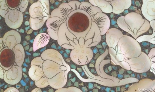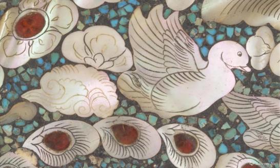 螺钿是一种特别的工艺——“螺”指贝类,“钿”为嵌装,螺钿即将贝类的外壳加工成平板状,再切割成各种花纹、图形,然后嵌入木板、金属、漆器表面。如今人们能见到的最古老的螺钿制品,都是唐代遗物。