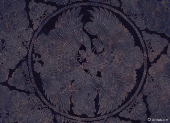 该宝物代表一对大的圆形花朵图案,四个角上有花朵和花朵,长边中心是花朵和山脉。背面有“ Todaiji”标记,表明其为寺庙所用。