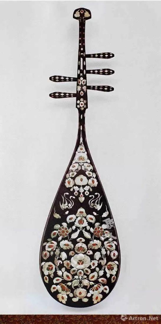 紫檀槽琵琶 全场98.5 最大幅41.2 上次展陈:2002年