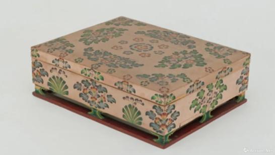 粉地彩絵箱 纵22.4 横28.4 高9.2 上次展陈:2009年