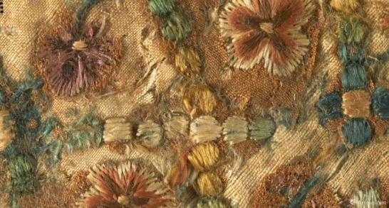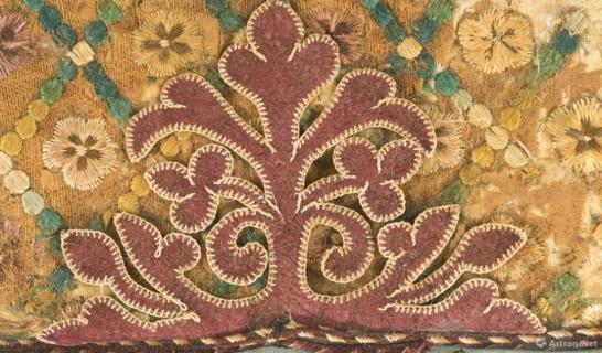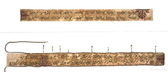 紫皮裁文珠玉飾刺繡羅帯残欠 长85 上次展陈:2008年