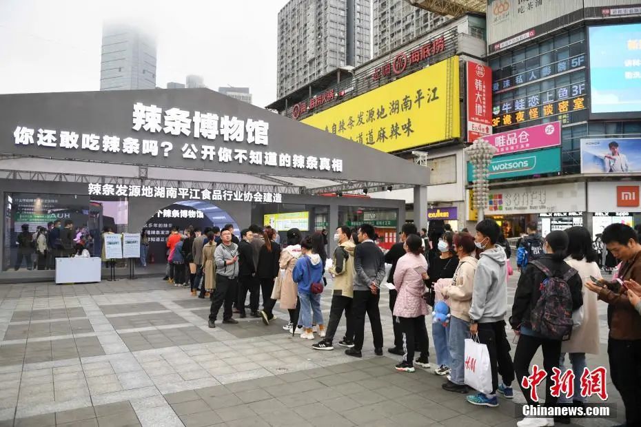 辣条博物馆开馆当天,很多观众前来排队参观。