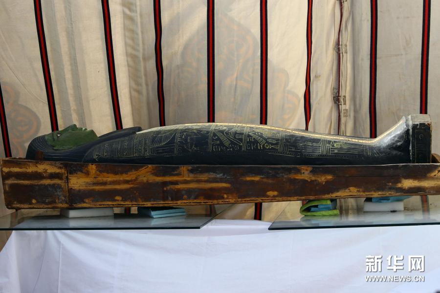 这是1月17日在埃及吉萨省塞加拉地区拍摄的出土石棺。新华社发(艾哈迈德·戈马摄)