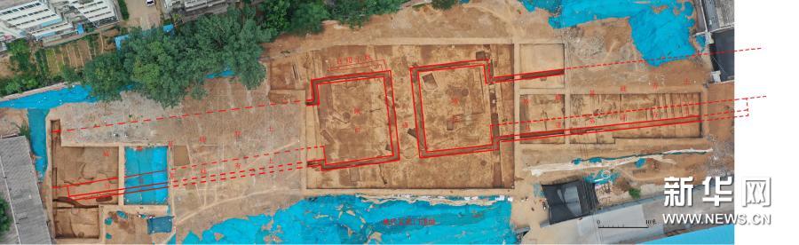 这是隋唐洛阳宫城玄武门遗址分布位置图(无人机照片)。新华社发(中国社会科学院考古研究所洛阳唐城工作队供图)