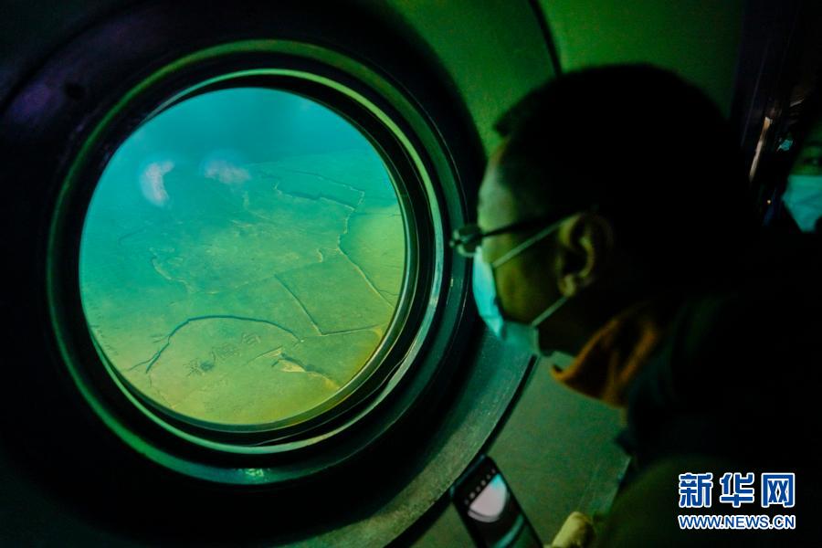 这是长江水下40米深处,利用“无压容器”原理原址原貌原环境保护的白鹤梁题刻(2月21日摄)。新华社记者 刘 潺 摄