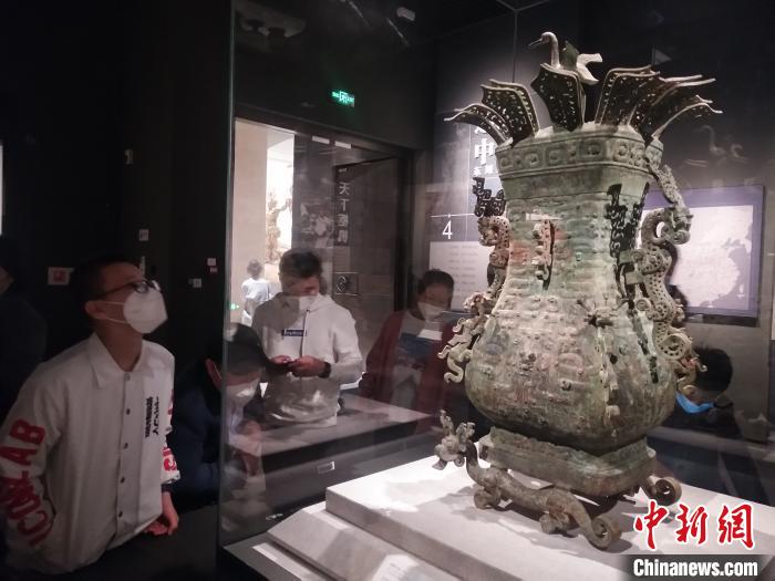 游客在“莲鹤方壶”前仔细观看。 杨大勇 摄