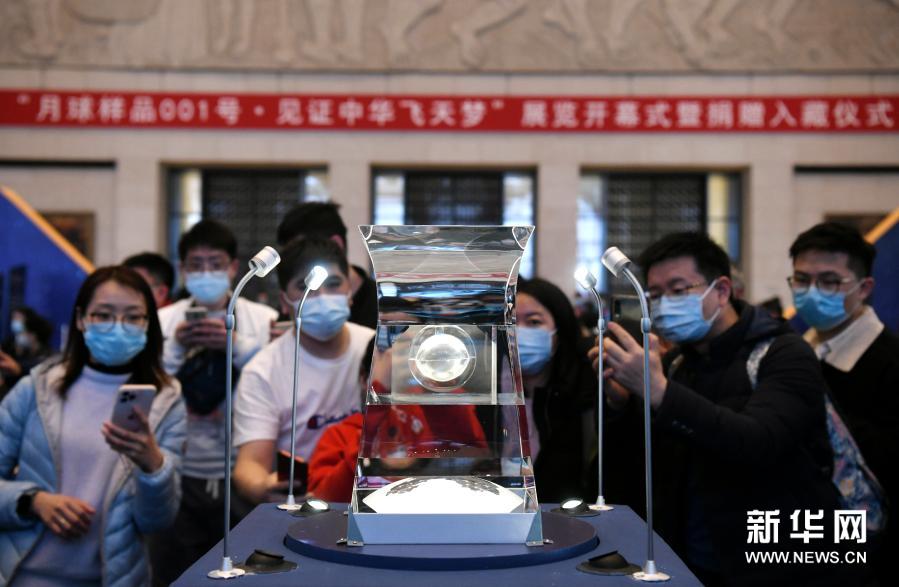 2月27日,人们在中国国家博物馆参观拍摄月球样品001号。新华社记者 金良快 摄