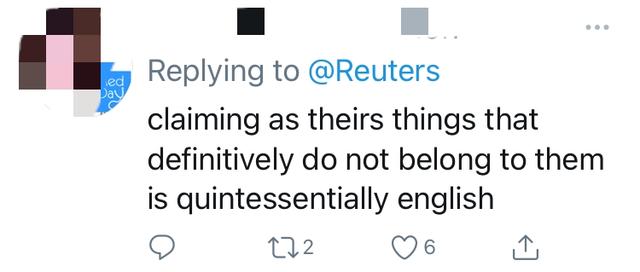 “把绝对不属于他们的东西宣称是自己的,这是经典英国作风。”