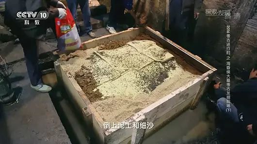为了整箱吊装五铢钱,泥土、细沙、木板齐上阵,考古现场俨然成了建筑工地: