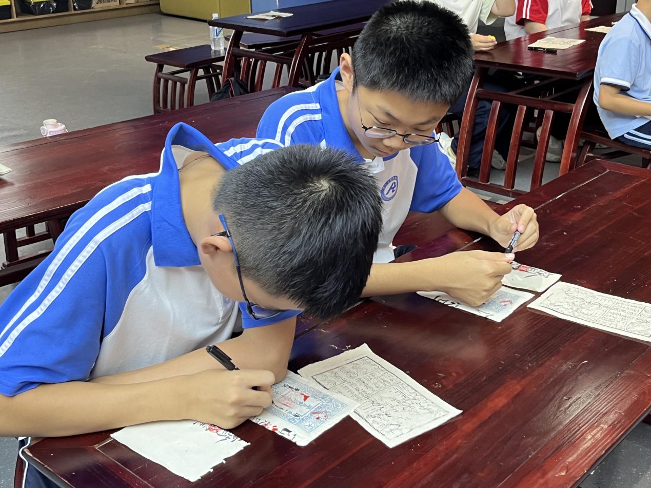 随着活动的深入,同学们开始动手设计并绘制自己的“专属纸画货币”。在老师指导下,同学们以特制纸片为底,运用画笔进行创作。大家纷纷发挥个人想象力,尝试融入传统钱币元素、努力体现地域文化特色,设计出独特的“概念货币”。孩子们专注绘制,将历史知识内化为个性化表达,加深了对货币形态与文化象征的理解。