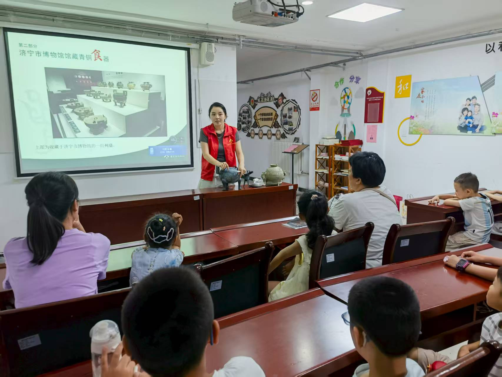 2025年8月28日下午,济宁市博物馆“文博大课堂——认识馆藏青铜器”活动走进运河社区。本次活动是博物馆延伸文博服务、让馆藏文物“活”起来的重要实践,旨在通过沉浸式体验让社区青少年近距离感受青铜文化的魅力,丰富暑期文化生活。