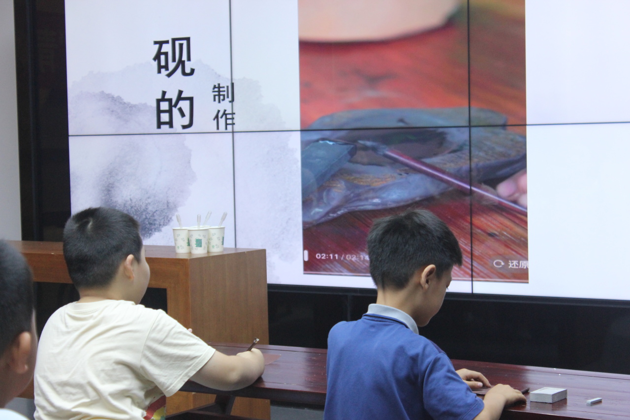 活动伊始,社教老师带领同学们走进一方砚台的世界,探寻砚台的历史渊源与文化故事。通过文人轶事和书香典籍的讲解,生动呈现了砚台在文人生活与书写艺术中的地位,使学员们深刻感受到砚台不仅是一件书写工具,更是文人精神、审美趣味与历史文化的凝结。