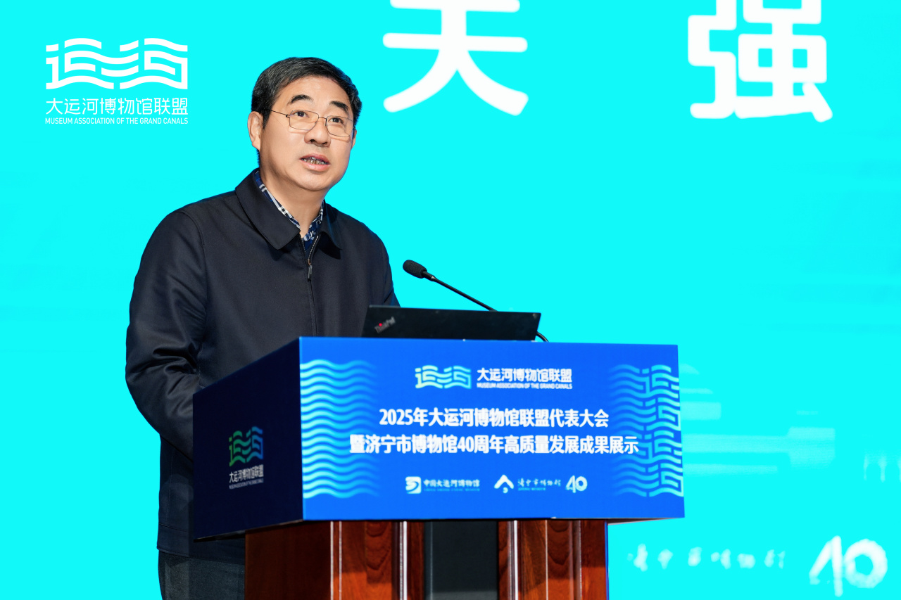 2025年12月11日-12月12日,2025年大运河博物馆联盟代表大会暨济宁市博物馆40周年高质量发展成果展示活动在济宁市博物馆(文化中心馆)顺利举办。中国博物馆协会理事长关强,山东省文化和旅游厅党组成员、副厅长,山东省文物局副局长孙波,中国博协常务理事、尼山世界儒学中心副主任、孔子博物馆馆长郭思克,济宁市政府党组成员、副市长李丽出席开幕式并致辞,山东省文化和旅游厅博物馆与社会文物处二级调研员陈宇,扬州中国大运河博物馆馆长郑晶,南京博物院名誉院长龚良,中国博物馆协会副理事长陈瑞近,浙江省博物馆名誉馆长陈浩,济宁市文化和旅游局党组书记、局长,市文物局局长,市广播电视局局长王磊,西安碑林博物馆副馆长程俊,山东博物馆副馆长王勇军,山东省文物考古研究院专职副书记孔胜利,山东省文物保护修复与鉴定中心副主任吕承佳,山东大学博物馆副馆长杨海燕,济宁市社科联党组书记、主席马汉涛,中央民族大学民族学与社会学学院副院长薛寒冰,济宁市文化和旅游局三级调研员张兴春等领导出席活动。活动由济宁市文物保护中心主任,济宁市博物馆党委书记、馆长张超主持。