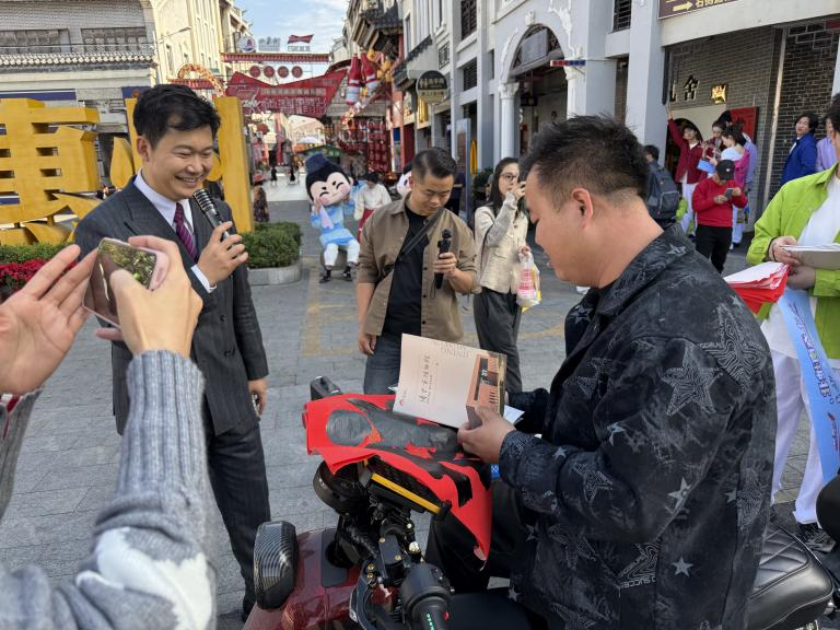 活动期间,济宁文旅推介团还走进惠州的水东街历史文化街区,精心组织开展了富有特色的线下快闪活动。通过创意表演、趣味互动、发放宣传品等面对面形式,与市民游客沉浸式交流,将“相约济宁过大年”的盛情邀约生动传递至惠州市的街头巷尾。