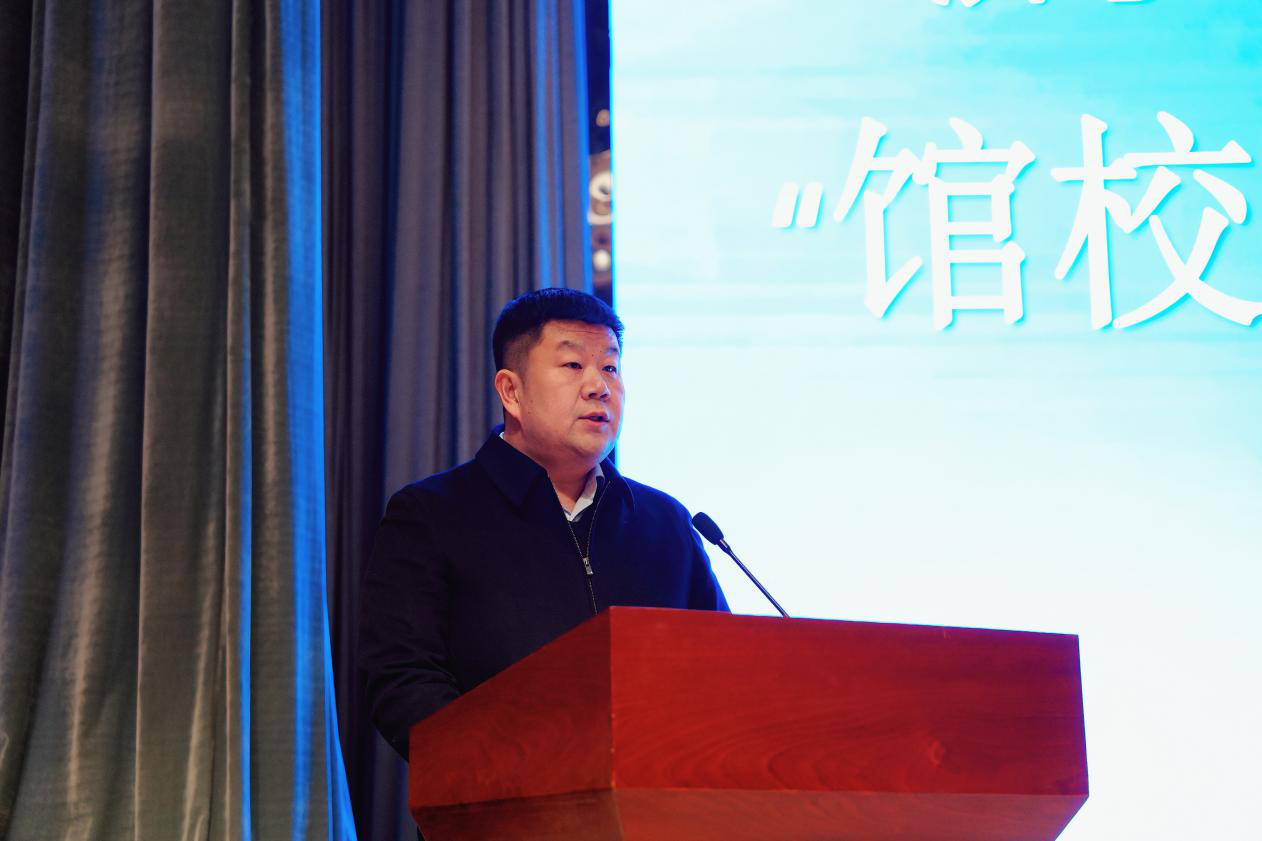 济宁市育才中学党委书记张兆杰在致辞中强调,此次共建是学校探索“大思政课”建设、落实立德树人根本任务的重要举措。他提到,育才中学作为思政课改革试点校,将依托博物馆厚重的历史与红色资源,切实履行三项职责:一是深耕课程,打造“行走的思政课”,开发校本文物读本,让文物“说话”、历史“活”起来;二是强化实践,搭建成长平台,启动“育才学子志愿服务队”,组织学生在馆内开展公益讲解与研学;三是推进师资共建,通过“走出去、请进来”实现馆校师资互补、双向赋能。张兆杰书记强调,馆校合作旨在推动思政小课堂与社会大课堂深度融合,引导师生在触摸历史中坚定信念、提升素养、锤炼本领,走出一条馆校协同、知行合一的新路。